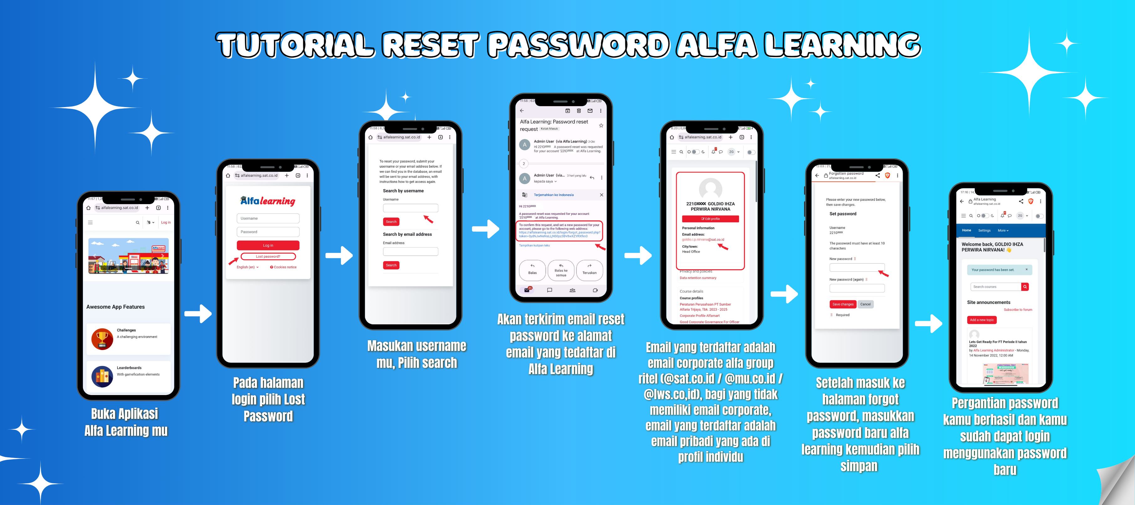 e-mail yang terdaftar di Alfa Learning adalah email corporate, jika tidak memiliki email corporate maka menggunakan email pribadi yang terdaftar di profil individu.